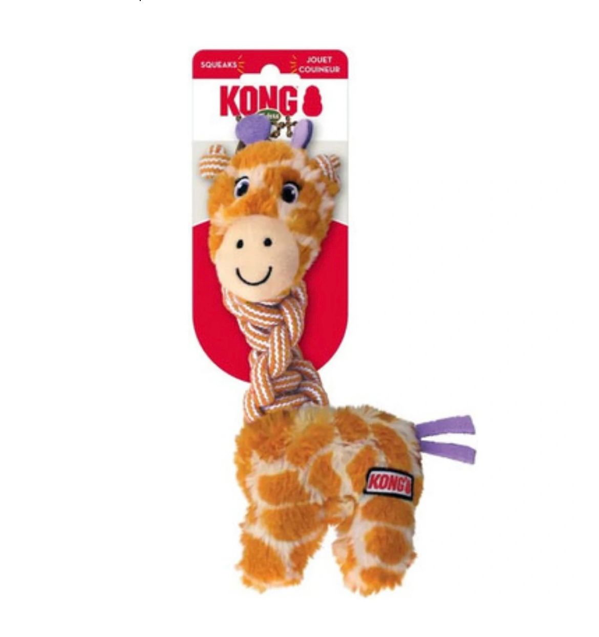 O longo pescoço trançado do KONG Knots Twists satisfaz os instintos de morder com uma trança irresistível de corda de algodão resistente que os cães adoram mastigar. O apito mantém a diversão e, ao mesmo tempo, o mínimo enchimento facilita a limpeza de um companheiro macio e durável que satisfaz os instintos. Além disso, mastigar a corda ajuda a limpar os dentes.