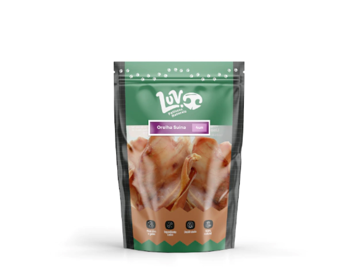Este mastigável, de baixa rigidez, possui uma aparência impactante, pois é feito a partir das orelhas de porcos.
